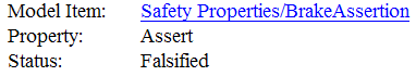 Если в анализе проверки свойств используется ссылочный блок Observer, то в каждом разделе элемента модели отображается информация о наблюдателе в подразделе Observer Model (s) информация о конструкторской модели в подразделе Design Model. Эти подразделы будут пустыми, если в модели не найдена цель теста.