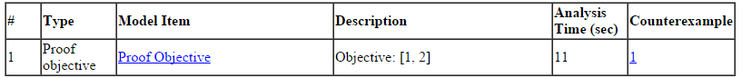 В этом примере проверки свойств программное обеспечение превысило предельное время анализа (указанное параметром Maximum analysis time) или было прервано до завершения обработки этих целей.