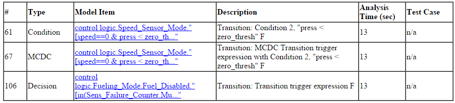 При анализе модели с целью покрытия модели, для которой установлено значение Enhanced MCDC, программное обеспечение сообщает о состоянии обнаружения элементов модели. Дополнительные сведения см. в разделе Расширенное покрытие MCDC в Simulink Design Verifier.