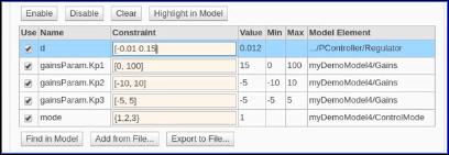 По возможности таблица параметров автоматически генерирует значения ограничений для каждого параметра в зависимости от типа данных и расположения параметра в модели. Дополнительные сведения см. в разделе Определение значений ограничений для параметров.