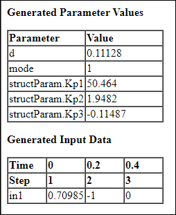 Тестовый пример 1 показывает, что Simulink Design Verifier настроил все параметры таким образом, что все входы, поступающие от In1 входного сигнала, блока усиления и переменной режима, упадут ниже -0,5 или выше 0,5. При создании тестовых примеров все ограничения удовлетворяют поставленным целям.
