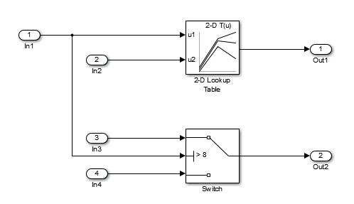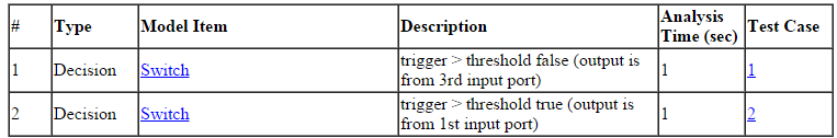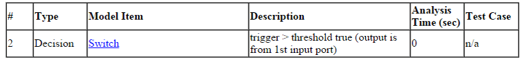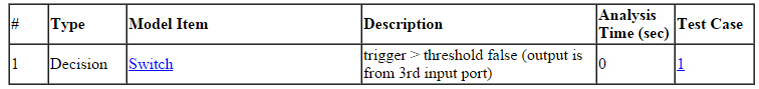 Подсистема проверки ограничивает анализ в пределах границ точки останова таблицы. Дополнительные ограничения препятствуют созданию тестов, выполняющих вторую задачу для блока Switch. Условие, при котором входной сигнал In1 > 8 является неудовлетворительным.