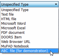 Щелкните Создать, чтобы добавить новую ссылку требования. Выпадающий список Тип документа теперь содержит ABC file (for demonstration) вариант.