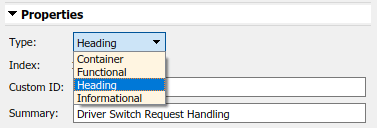 Тип настраиваемого требования Заголовок определяется как подтип встроенного типа требования Контейнер. Требования к заголовкам не влияют на метрику статуса внедрения. Все функциональные требования, сгруппированные под ними, выполняются.