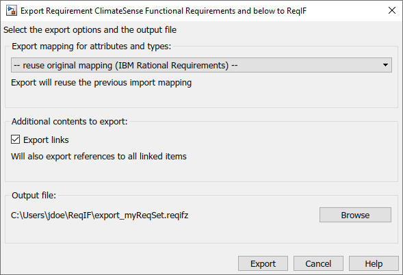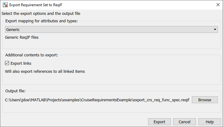 Simulink Requirements предоставляет встроенные сопоставления экспорта для некоторых сторонних приложений, использующих ReqIF: