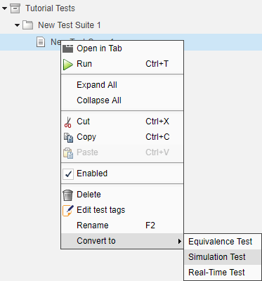 Тестовый случай по умолчанию - это базовый тест. Преобразуйте его в тест моделирования. Выберите тестовый пример и в контекстном меню выберите «Преобразовать в» > «Тест моделирования» и нажмите «Да» для подтверждения преобразования.