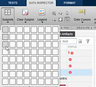 Постройте график сигналов с выхода. В окне «Панель инструментов инспектора данных» выберите «Вложенные печати» и выберите три графика.