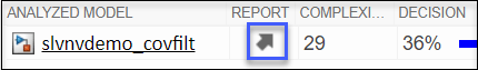 Чтобы создать отчет о покрытии для модели, щелкните стрелку в столбце Отчет таблицы Агрегированные результаты покрытия.