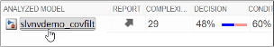 Для перехода от результатов тестирования покрытия в Диспетчере тестов к модели щелкните имя модели в таблице Агрегированные результаты покрытия.