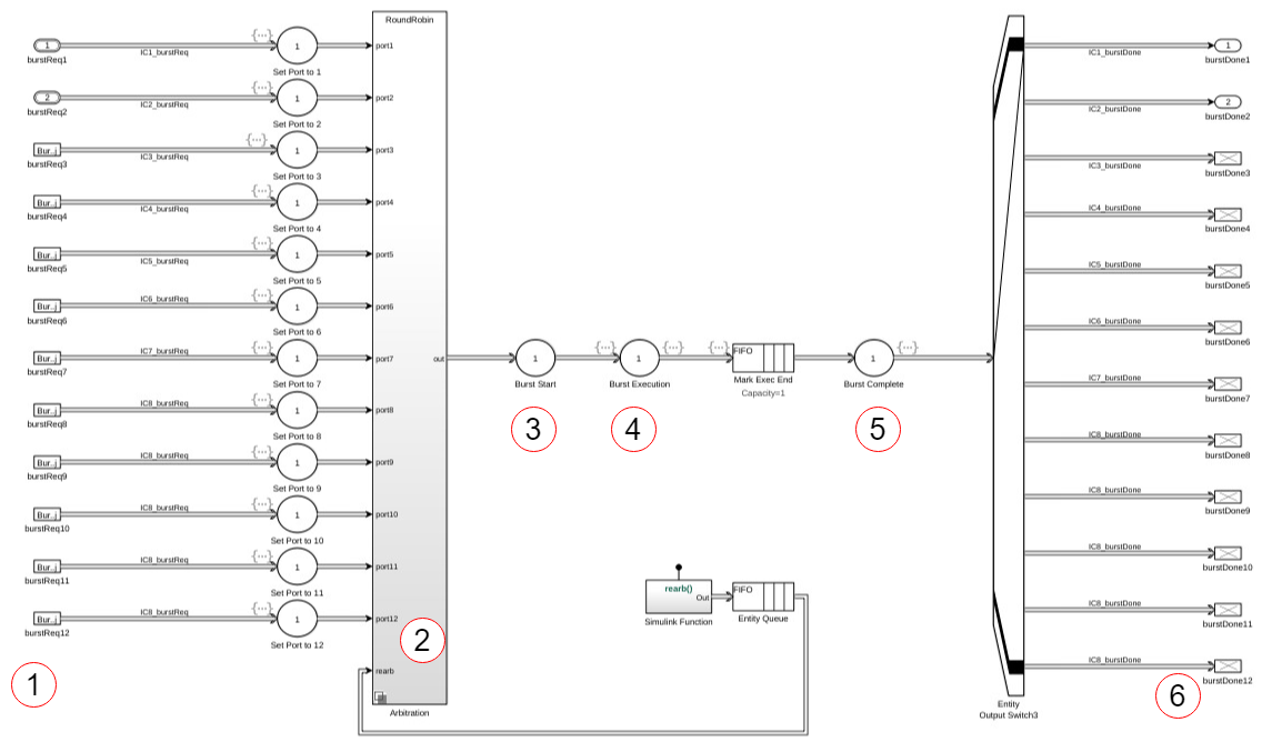 Блок контроллера памяти выполняет арбитраж между хозяевами и предоставляет им уникальный доступ к общей памяти. Настройте этот блок для поддержки нескольких каналов с различными протоколами арбитража. Блок контроллера памяти также предназначен для регистрации и отображения данных о производительности, что позволяет отладить и понять производительность системы во время моделирования.