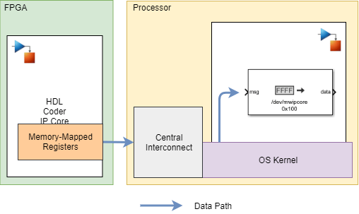 При разработке или анализе программного обеспечения приложения SoC блок считывания регистра может быть подключен к блоку источника данных ввода-вывода. В этой конфигурации блок IO Data Source предоставляет либо ранее записанные, либо искусственные данные, обеспечивая возможность более направленного моделирования программного обеспечения и процессорной стороны приложения, без необходимости явно моделировать взаимодействие аппаратных средств и памяти.