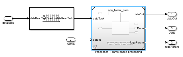 Откройте маску диалогового окна «Блок модели» и задайте для параметра «Имя модели» значение soc_hwsw_proc.slx.