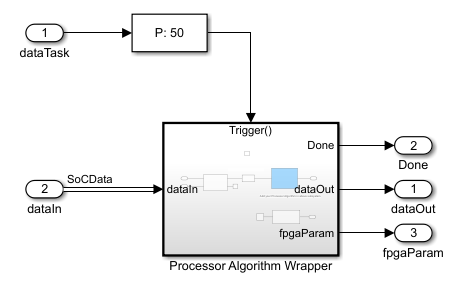В dataTask block dialog mask, выберите Signal Attributes > Output function call, чтобы открыть порт вызова функции во внешней модели.