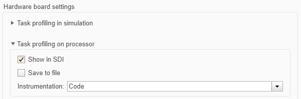 В разделе Hardware board settings разверните раздел Task profiling on processor и выберите Show in SDI.