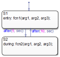 Действие Stateflow может передавать аргументы написанной пользователем функции по ссылке, а не по значению. В частности, действие может передавать указатель на значение, а не на само значение. Например, действие может содержать следующий вызов: