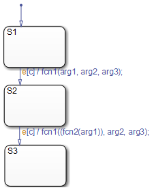 Переходное действие при переходе от S2 кому S3 показывает вызов функции, вложенный в другой вызов функции.