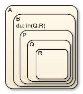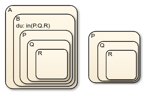 | 2 | Переход на следующий уровень иерархии (состояние A), диаграмма ищет состояние A.P.Q.R. | Совпадение не найдено. |