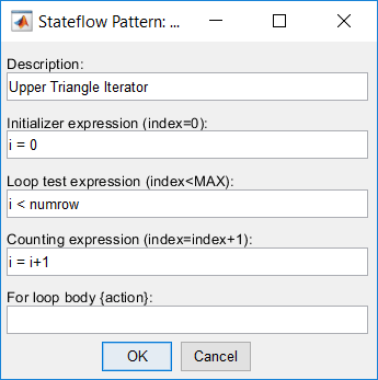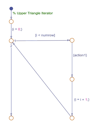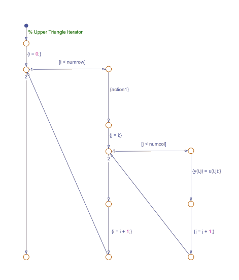 В редакторе Stateflow выберите схему итератора верхнего треугольника.