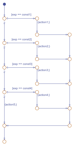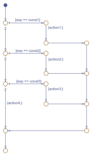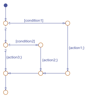Мастер создания шаблонов создает блок-схемы, геометрия и компоновка которых соответствуют рекомендациям Консультативного совета MathWorks (MAB). Можно настроить блок-схему, изменив условия и действия или вставив дополнительные логические шаблоны. Можно также сохранить блок-схему в качестве пользовательского шаблона в мастере шаблонов для последующего повторного использования.