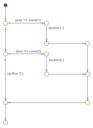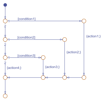 Диаграмма Stateflow, содержащая блок-схему, может содержать только переходы и переходы. Диаграмма не может содержать другие объекты, такие как состояния, функции или таблицы истинности.