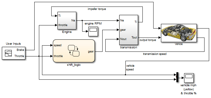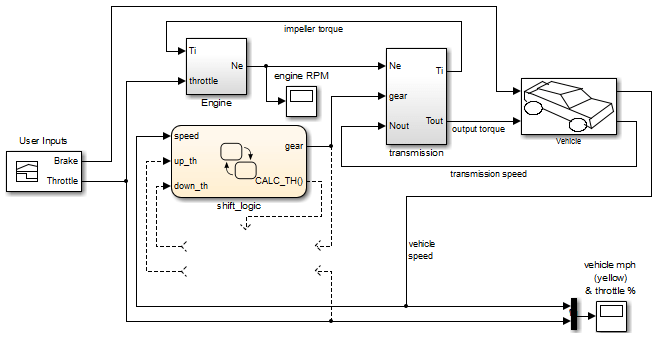 В модели Simulink добавьте сигнальную линию для throttle между входом блока Engine и входом диаграммы shift_logic.