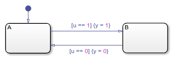 Объединить действия. В диаграммы Мура можно включить только одно действие для каждого штата. Действие может состоять из нескольких инструкций команды. Stateflow оценивает состояния в чартах Мура с верхнего уровня вниз. Активные состояния в диаграммах Мура выполняют действие состояния перед оценкой переходов. Следовательно, выходные данные вычисляются на каждом временном шаге, является ли внешний переход действительным или нет.