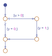 Блок-схема Stateflow ® - это графическая конструкция, моделирующая логические шаблоны, такие как деревья решений и итеративные циклы. Блок-схемы представляют комбинаторную логику, в которой один результат не зависит от предыдущих результатов. Блок-схемы создаются путем объединения соединительных соединений и переходов без использования каких-либо состояний. Соединения обеспечивают ветви принятия решений между различными путями перехода. Выполнение блок-схемы начинается с перехода по умолчанию и заканчивается завершающим переходом (переходом, который не имеет допустимых исходящих переходов).