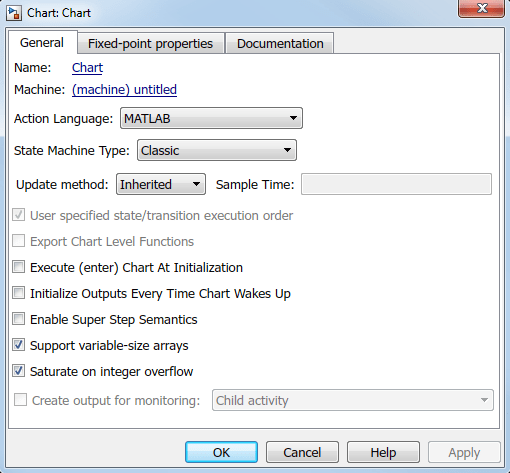 Для диаграмм Stateflow ® в моделях Simulink ® можно управлять тем, происходит ли насыщение при переполнении целых чисел. Для управления обработкой переполнения используйте свойство диаграммы Saturate on integer overflow.