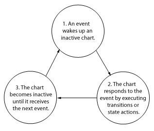 Диаграммы статофлоу реагируют на события циклически.