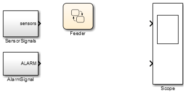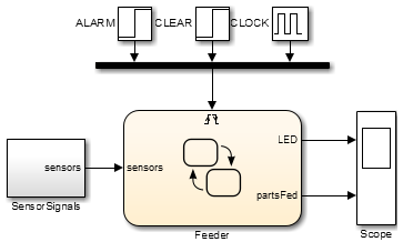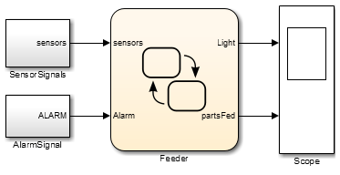 В этом упражнении в модель Simulink добавляется диаграмма State flow, содержащая входные сигналы датчиков и аварийных сигналов для питателя.