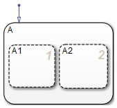 Подсостояния с пунктирными границами указывают на параллельное (И) разложение. Используйте эту декомпозицию для описания параллельных режимов работы. Когда состояние имеет параллельное разложение (И), все подсостояния активны одновременно.