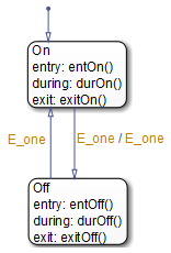 Эта последовательность завершает выполнение диаграммы Stateflow ®, связанной с событиемE_one когда состояние On изначально активен.