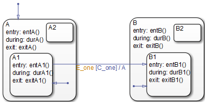 В этом примере показано поведение перехода от подсостояния ИЛИ к подсостоянию ИЛИ.
