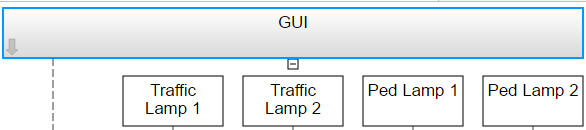 Например, подсистема GUI содержит четыре маскированные подсистемы: лампа трафика 1,Traffic лампа 2, лампа Ped 1 и лампа Ped 2.