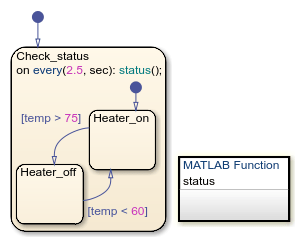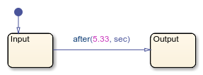 В автономных диаграммах в MATLAB операторы after, at, и every создание MATLAB timer объекты, генерирующие неявные события для пробуждения диаграммы. Объединение этих операторов с условиями на одном и том же пути перехода может привести к непреднамеренному поведению: