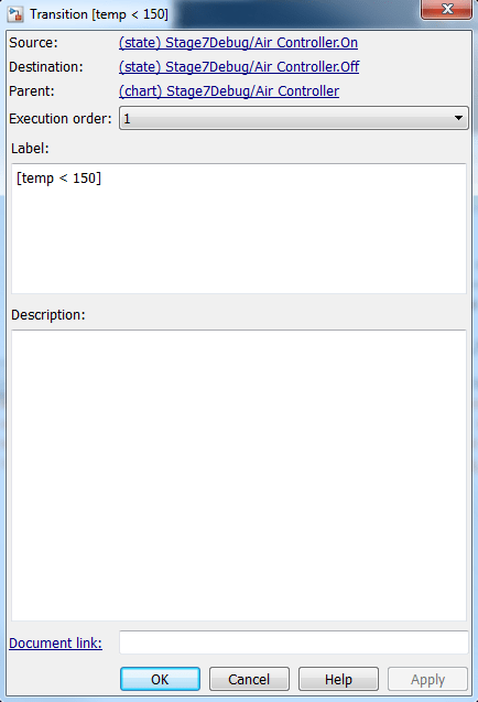 Можно переместить метки перехода, чтобы сделать диаграмму Stateflow более удобочитаемой. Чтобы переместить метку перехода, выполните следующие действия.