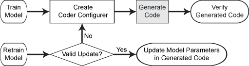 Создание файлов MATLAB, необходимых для создания кода, включая две функции точки входа predict.m и update.m для predict и update функции Mdlсоответственно.