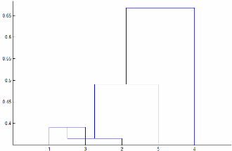 Если 'Linkage' является 'centroid' или 'median', то linkage может создать дерево кластера, которое не является монотонным. Этот результат возникает, когда расстояние от объединения двух кластеров, r и s, до третьего кластера меньше, чем расстояние между r и s. В этом случае в дендрограмме, нарисованной с ориентацией по умолчанию, путь от листа к корневому узлу делает некоторые шаги вниз. Чтобы избежать этого результата, укажите другое значение для 'Linkage'. На следующем рисунке показано немонотонное дерево кластера.