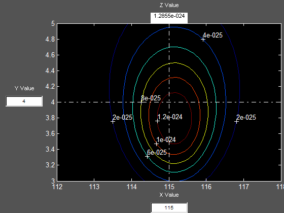 fsurfht(fun,xlims,ylims) является интерактивным контурным графиком функции, заданной текстовой переменной fun. Пределы по оси X определяются xlims в форме [xmin xmax]и пределы по оси y задаются ylims в форме [ymin ymax].