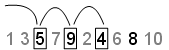 Scramble - Скремблирование перетасовывает точки одним из нескольких различных способов. В этом примере предположим, что скремблирование превращает последовательность в 1,3,5,7,9,2,4,6,8,10. Первые три очка сейчас [1,3,5]: