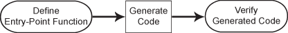 Определите функцию точки входа, которая вызывает функцию, поддерживающую генерацию кода, создайте код C/C + + для функции точки входа с помощью codegen (Кодер MATLAB), а затем проверьте созданный код. Функция начального уровня, также известная как функция верхнего уровня или первичная функция, является функцией, определяемой для создания кода. Потому что вы не можете вызвать какую-либо функцию на верхнем уровне с помощью codegen, необходимо определить функцию точки входа. Все функции в рамках функции начального уровня должны поддерживать генерацию кода.