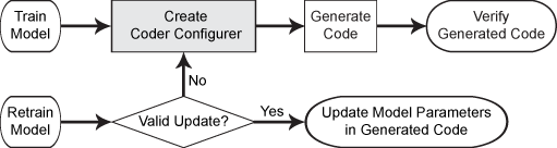 После обучения модели машинного обучения создайте конфигуратор кодера для модели с помощью learnerCoderConfigurer. Используйте функции объекта и свойства конфигуратора, чтобы указать опции генерации кода и создать код C/C + + для predict и update функции модели машинного обучения. Для создания кода C/C + + требуется Coder™ MATLAB ®.