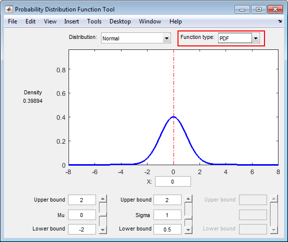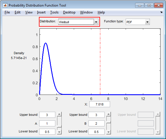Distribution - Распределение вероятностейNormal (по умолчанию) | Exponential | Poisson | Weibull | ...Укажите распределение вероятностей для изучения, выбрав имя распределения из раскрывающегося списка. Выпадающий список включает примерно 25 вариантов распределения вероятностей, включая Normal, Exponential, Poisson, Weibullи многое другое.