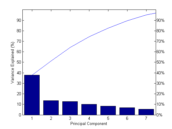 figure() pareto(explained) xlabel('Principal Component') ylabel('Variance Explained (%)')