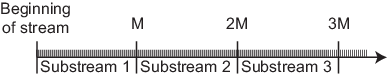 Записи в различных субпотоках имеют хорошие статистические свойства, подобные свойствам записей в одном потоке: независимость, отсутствие k-way корреляции на различных лагах. Субпотоки имеют такую длину, что можно рассматривать субпотоки как независимые потоки, как показано на следующем рисунке.