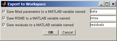 Диалоговое окно позволяет сохранить информацию о соответствии переменным рабочей области MATLAB ® с допустимыми именами.