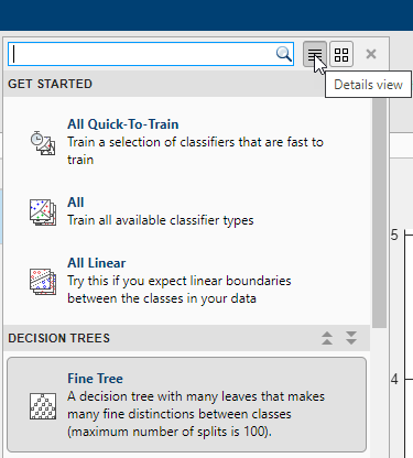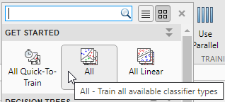 Чтобы попробовать все неоптимизуемые стили модели классификатора, доступные для набора данных, щелкните Все (All), а затем щелкните Поезд (Train).