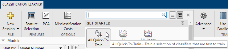 Модели можно обучать параллельно с помощью программы Classification Learner при наличии панели инструментов Parallel Computing Toolbox. Параллельное обучение позволяет обучать сразу несколько классификаторов и продолжать работу.