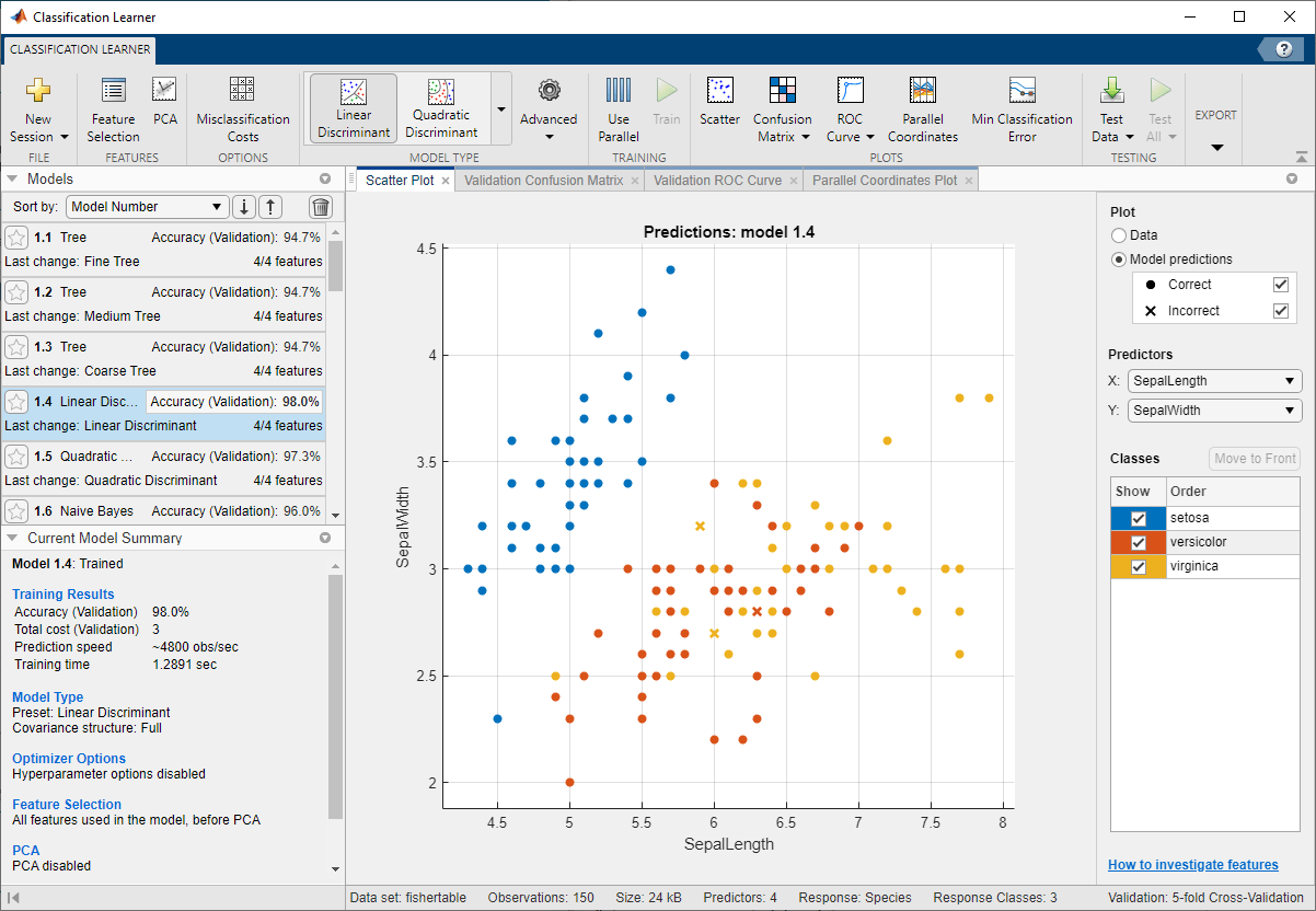 Можно использовать Classification Learner для автоматического обучения выбора различных классификационных моделей в данных.