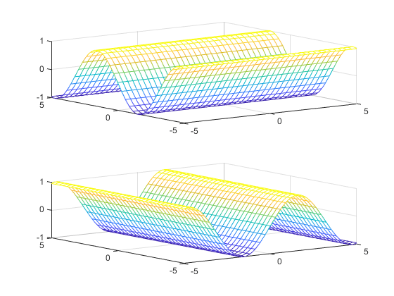 Например, следующий код отображает сетку f (x, y) = sin (y) двумя способами. Первый путь заставляет волны колебаться относительно оси y. Второй способ присваивает оси x значение y, поскольку это первая (и единственная) переменная в символьной функции.